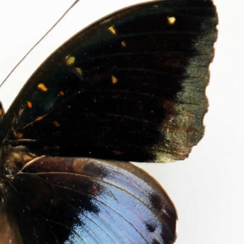 蝶は自然な生き物でとてもデリケートですので、まれに羽に小さな割れ目・はがれや傷、また、写真とは異なる色合いとなることもございます。